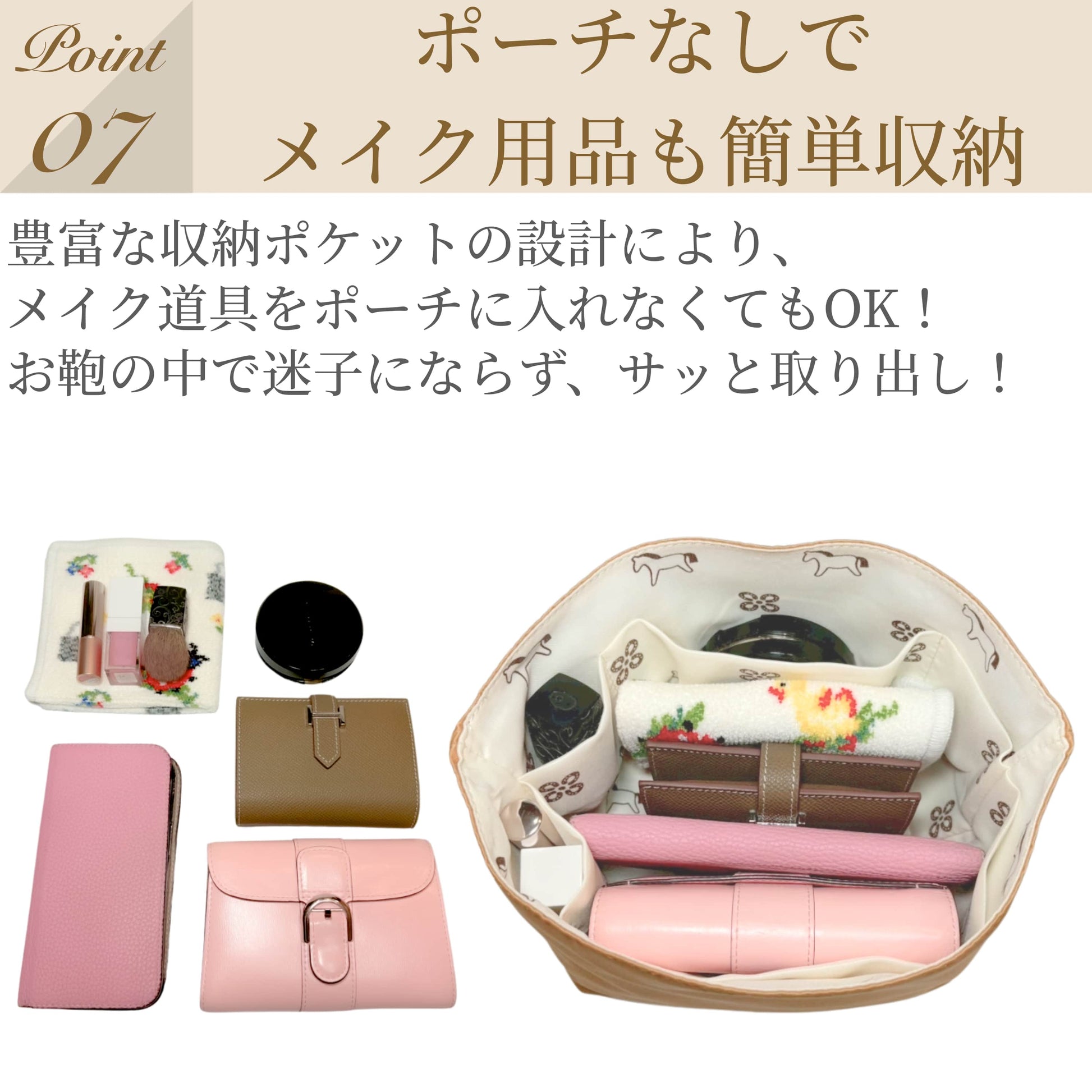 エルメスのバッグにぴったり収まるバッグインバッグ。<br>