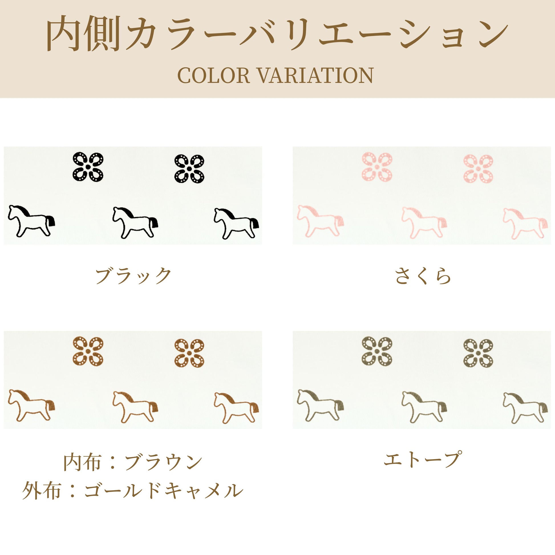 【カラー】ブラック / エトープ / さくら / ゴールドキャメル(内布馬柄:ブラウン)<br><br>