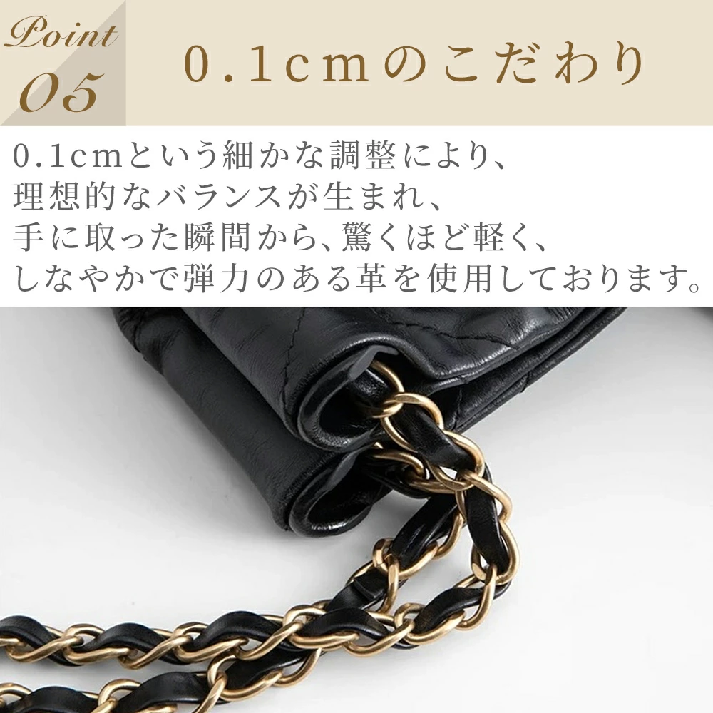 0.1cmという細かな調整により、驚くほど軽く、しなやかで弾力のある革を使用◎